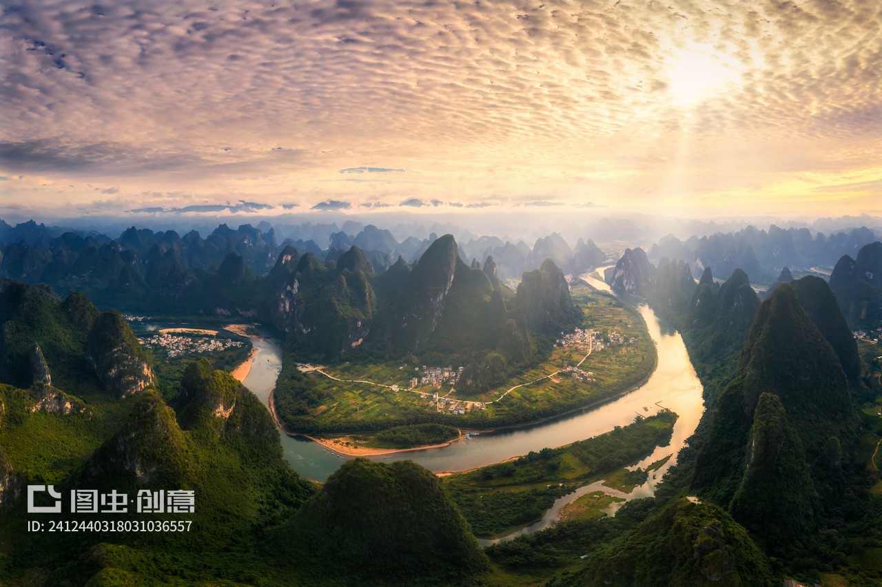 The Lijiang River, the heart of Guilin's landscape in Guangxi Zhuangautonomousregion, is a UNESCO World Natural Heritage Site and part of the second batch of Global Geological Heritage Sites. Its waters remain remarkably clear, reflecting karst peaks and the rugged cliffs of Nine Horses Mountain to create a natural masterpiece. Paddling a bamboo raft reveals the karst scenery in its purest form and evokes the timeless phrase "clear mountains, beautiful waters, strange caves, and exquisite rocks."