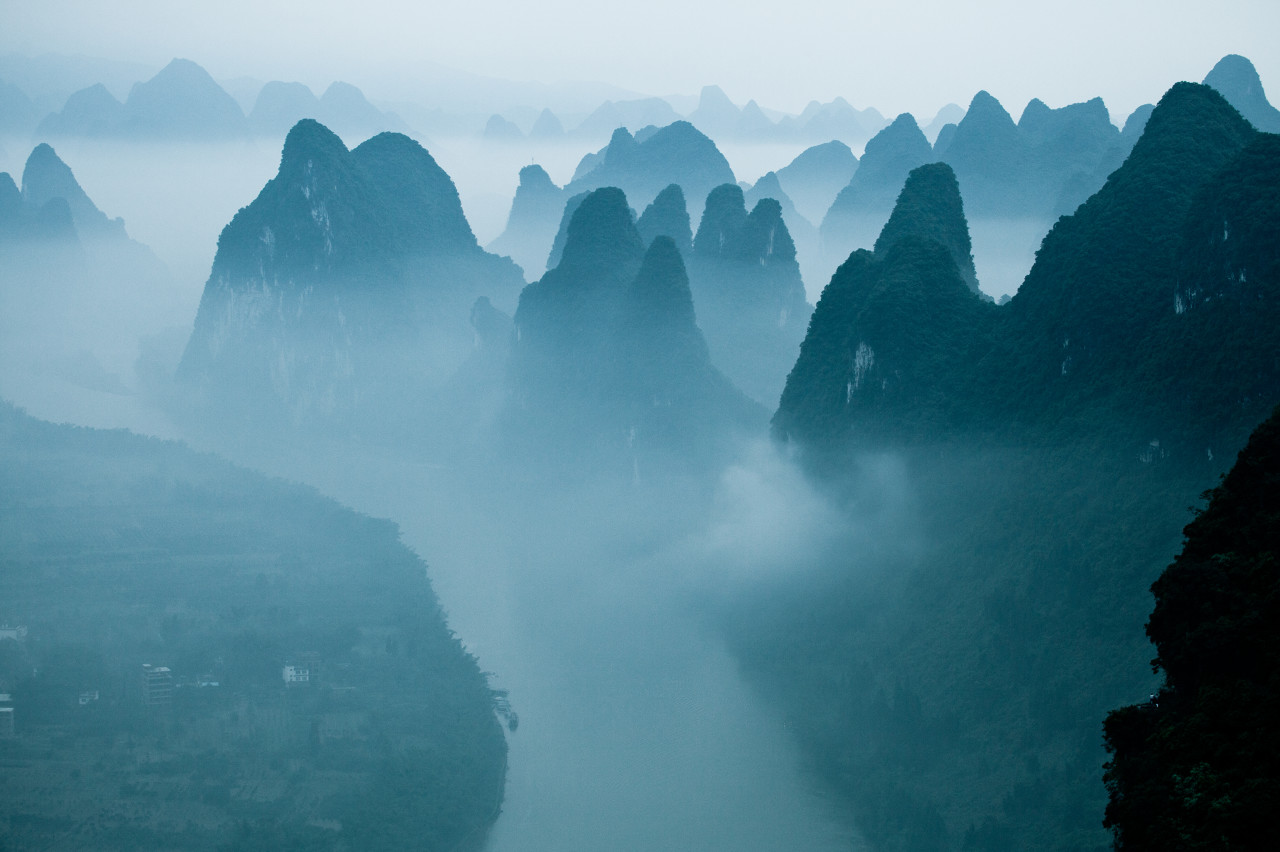 The 83-kilometer prime stretch of the Lijiang River winds like a jade-green ribbon through karst peaks, flanked by surreal cliffs and mirrored emerald waters. The Caoping, Yangdi, and Xingping sections showcase this landscape at its most striking.